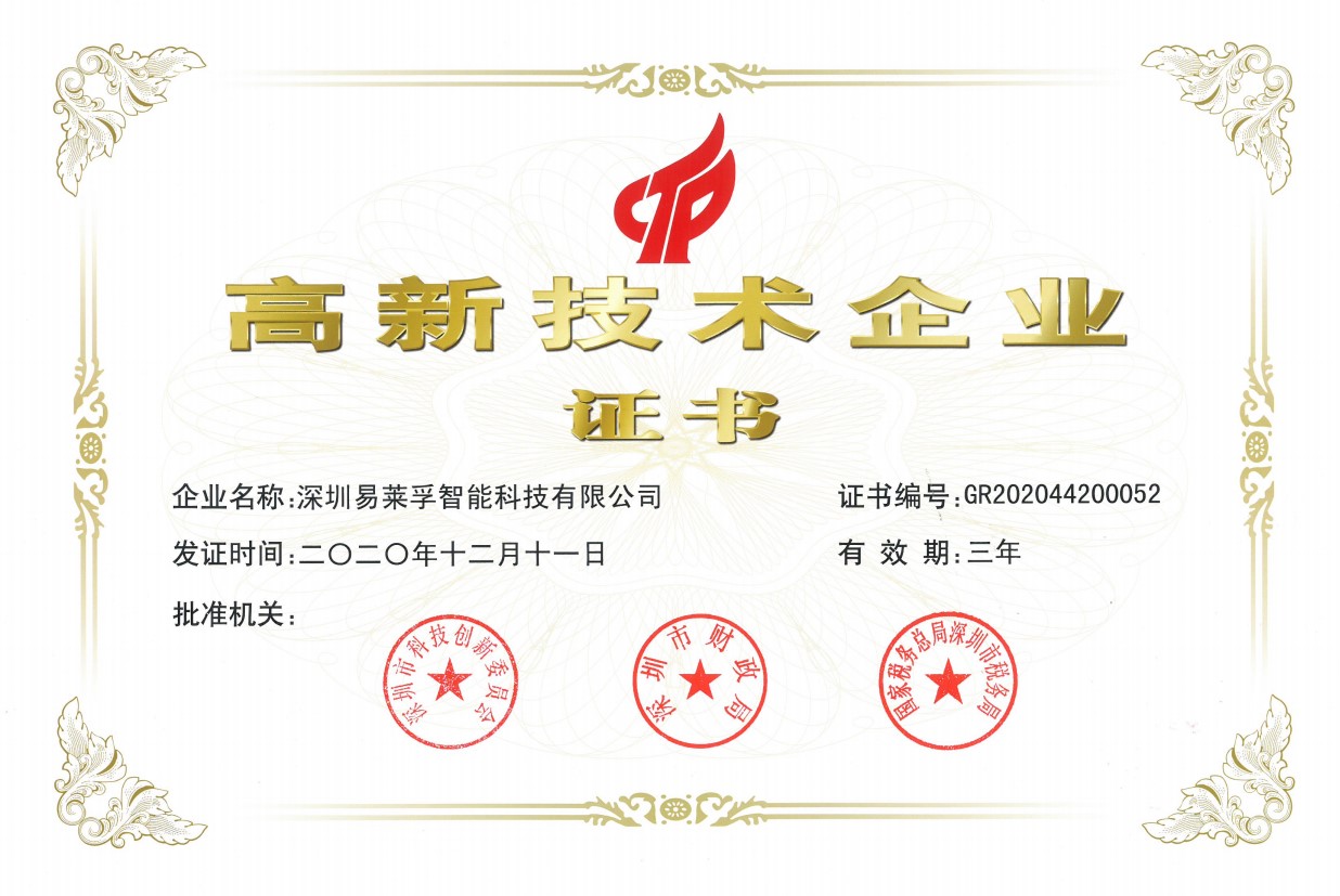 喜訊|熱烈祝賀易萊孚榮獲“高新技術(shù)企業(yè)”證書!